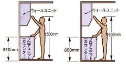 使いやすいカウンターの高さは、身長(cm)÷2+5(cm)が目安になります。