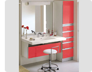 立位・座位・車いす使用者のアプローチのしやすさを特に配慮した居室にマッチする化粧台です。
