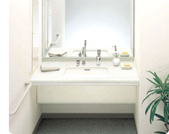 車いすで快適にスムーズに使える洗面化粧台です。