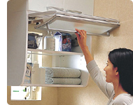 日常必要な小物やタオルの収納は手の届きやすい位置に設置しましょう。