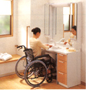いすや車いすに座って洗顔・歯磨きのできる洗面台にすると