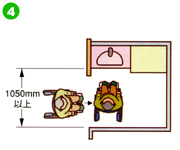 | 衣服の着脱を行う場合は腕を広げても 壁に手がぶつからないように スペースを確保しましょう。 |