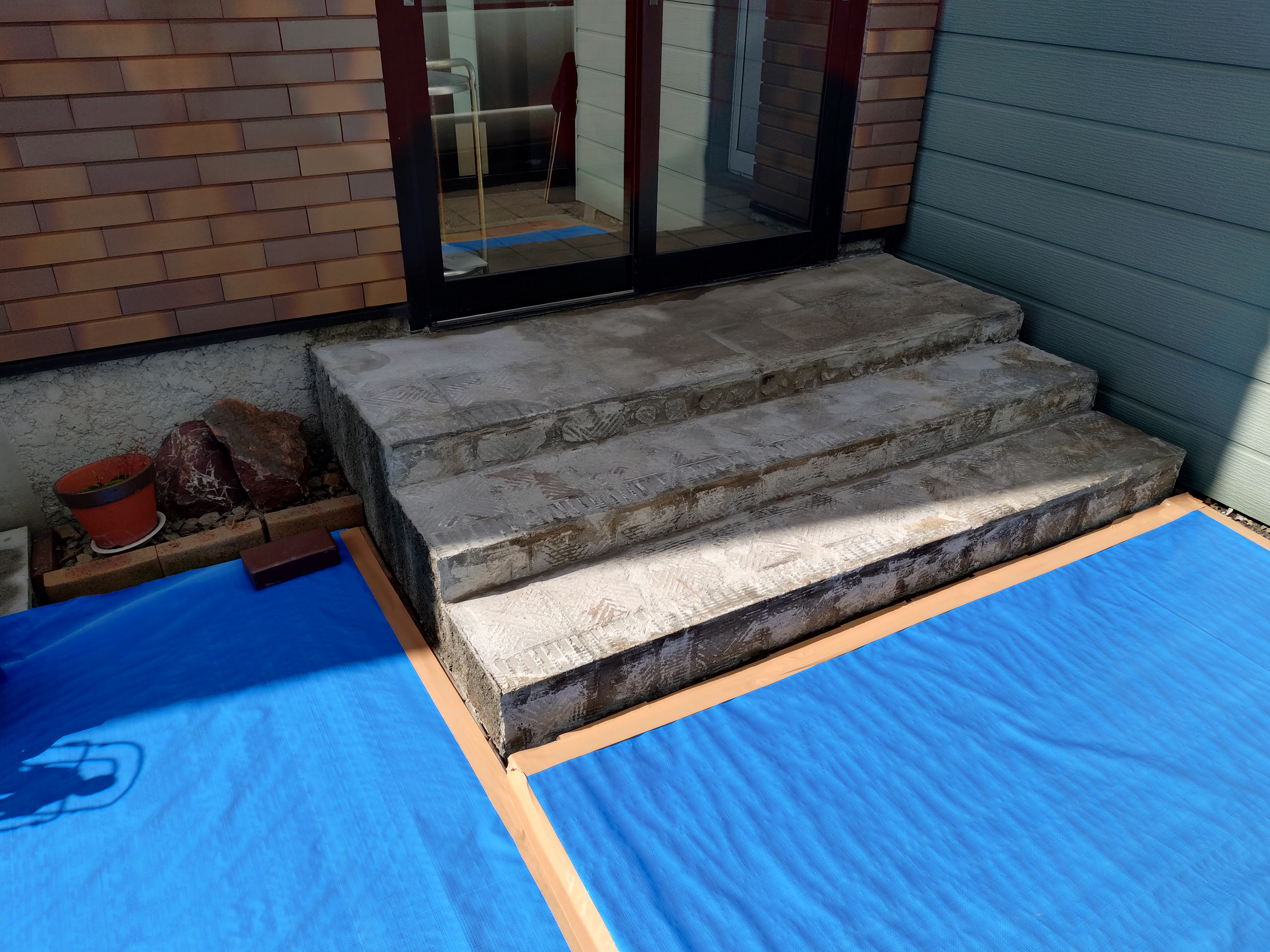 - テラス、玄関前のモルタルひび割れ防止に・・・